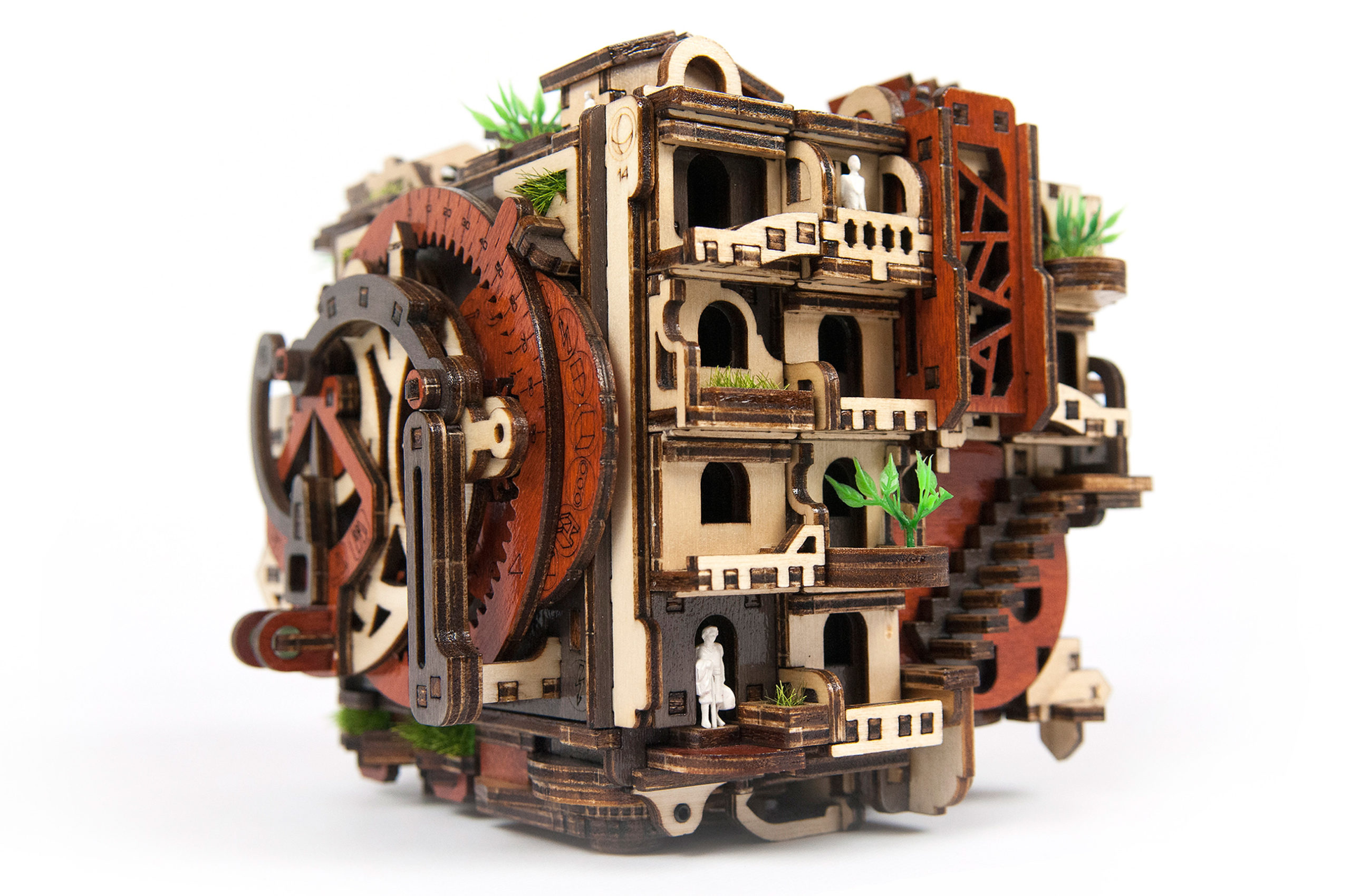 Pour autant, NKD Puzzle n’a pas renoncé à la fabrication de puzzle box dignes d’œuvres d’art. Architecto en est la preuve : 900 pièces à imbriquer et 116 mouvements pour la débloquer ! Inspirée des œuvres de l’artiste Maurits Cornelis Escher, tirée à 44 exemplaires, elle est vendue 4 444 euros. Seize exemplaires ont déjà trouvé acquéreurs. Alors, tentés par une plongée dans l’univers d’une ville multidimensionnelle ?