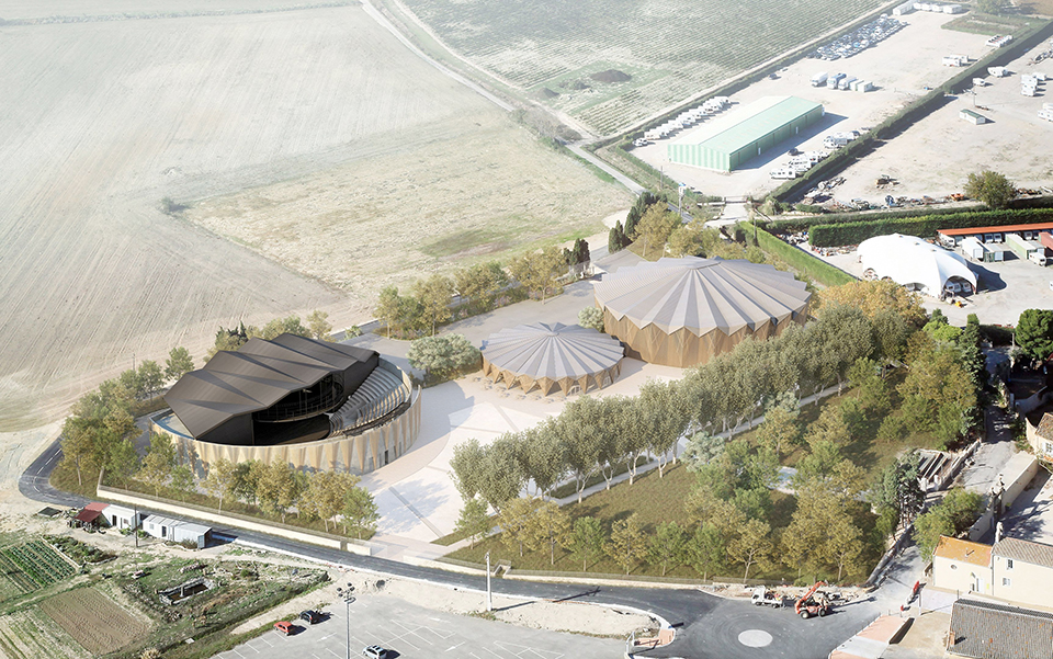 « Nous souhaitions garder cette ambiance de cirque qui a fait la célébrité du site en lui conférant un état d’esprit si particulier, pose Dominique Jaumard, directeur adjoint au Département de l’Hérault (porteur du projet à 100 %), en charge de l’aménagement du territoire. Parmi les 80 candidats en lice, K Architectures a respecté cette approche circulaire en reprenant le modèle des chapiteaux avec une forte utilisation du matériau bois aux qualités esthétiques et acoustiques. » Drapés sur la charpente métallique de la salle de spectacle (nommée théâtre Michel Galabru), des voiles de béton creux reforment un chapiteau tout en séparant les espaces, l’habillage bois structurant l’ensemble. Dans l’amphithéâtre en plein air Claude Nougaro, des gradins en béton (ils seront posés dans les prochains mois) et un toit reprenant la forme d’une toile. Les bâtiments devraient être livrés l’été 2020, réalisant alors les ambitions de Kléber Mesquida pour la culture : « Nous allons développer sur le site exceptionnel de Bayssan une offre culturelle et de loisirs de qualité, pour tous les Héraultais », s’est exprimé, à plusieurs reprises depuis 2016, le président de Département. « Il est plus important aujourd’hui d’être à Béziers qu’au festival d’Avignon (…), le vrai combat est ici ! » affirmait, en 2017, un Bartabas prophétique, habitué des lieux avec son cirque équestre Zingaro programmé en 2016 pour le Printemps des Comédiens, puis en mai 2019 pour son dernier spectacle, Ex-Anima. Prophétique en effet, car la métamorphose du domaine de Bayssan est loin d’être achevée : le site s’ouvrira également à d’autres activités ludiques et sportives avec les Jardins de Méditerranée (29 hectares).