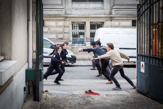 Alea jacta est… et pas de quartier ! Le collectif, emmené par les deux co-metteuses en scène Jade Herbulot et Clara Hédouin, investit les cours, passages et étages, lieux d’exposition… pour jouer trois épisodes de ce feuilleton publié dans les pages du journal « Le Siècle » entre mars et juillet 1844. Les portes claquent. Les répliques fusent. Les comédiens surgissent. Les couloirs bruissent des premières impressions exprimées par les spectateurs. Car, oui, le public est lui aussi envahi. Campé sur des trépieds pliables, il est d’abord cerné d’une pseudo conférence de presse qui explique l’épisode où la monarchie française est plongée dans une guerre civile au XIIe siècle. Singeant l’exercice en associant les spectateurs à cette comédie médiatique, chacun est mis en demeure de suivre le mouvement. Tricotée à partir du classique de la littérature française et des codes des blockbusters, cinématographique ou télévisuel, la mise en scène substitue aux capes et aux épées des smartphone et des pistolets en plastique, des Stetson et des Weston, des GI’s et des femmes fatales.