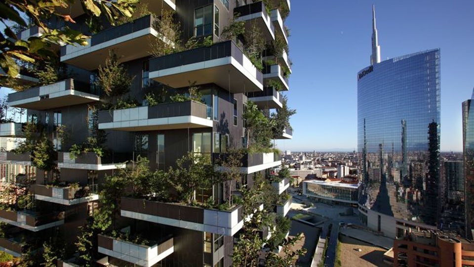A Milan – et sous peu à Shijiazhuang (Chine) – les tours Bosco Verticale (forêt verticale), 15 étages, se distinguent par leur capacité à produire une biodiversité abondante, positive sur le bilan énergétique, mais sans atteindre à priori la basse consommation (voir photo ci-dessous).