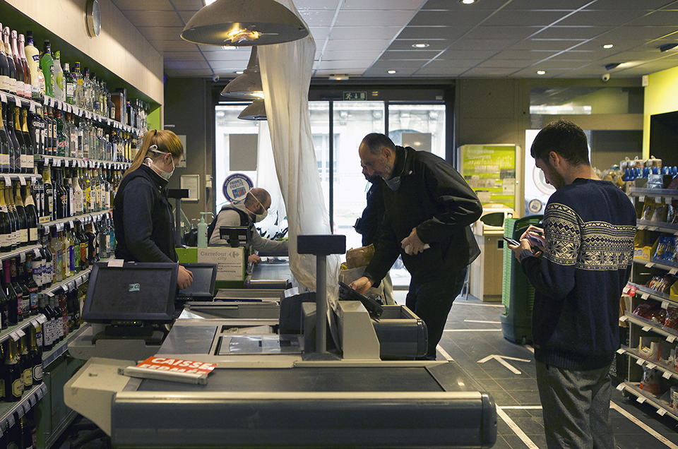 Quoique indépendante du groupe Carrefour, elle aussi devrait verser une prime à ses employés. Mais ce ne sera pas 1 000 euros. Dans le cahier des charges de la franchise, le gel hydroalcoolique est d’usage obligatoire en temps normal. C’est cependant un client dentiste qui leur a fourni les masques : « Ils sont arrivés ! » annonce dans la réserve une employée au reste de l’équipe.