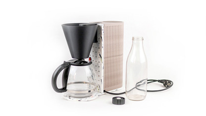 Désirer ce qui est jeté, c’est ça l’idée ? « Nous voulons en effet montrer qu’on peut imaginer des produits techniques désirables et utiliser des éléments réemployés issus de nos poubelles. Créer une boucle vertueuse : récolter, réutiliser, réinjecter. Si je prends l’exemple de la cafetière, la prochaine étape sera de procéder à une analyse de vie du concept de façon à voir s’il a un vrai impact sur l’environnement. »