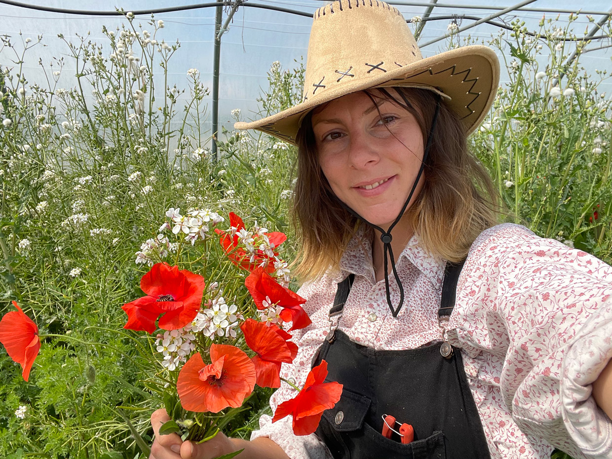 Dans les pas de mouvements tels que le Slow Flowers aux États-Unis et en Angleterre – où le nombre de fermes de fleurs locales a explosé –, l’idée de créer sa propre structure germe peu à peu dans la tête d’Iris, déjà adepte d’une alimentation bio. « La filière horticole a perdu 40 % de ses effectifs en dix ans : dans la région, elle reste presque anecdotique tant le nombre de producteurs est faible. Produire des fleurs de saison sans produits chimiques et les vendre à proximité de l’exploitation faisaient sens », explique Iris qui, business plan en poche et formation en Toscane auprès d’un producteur de plantes aromatiques et médicinales, se met en quête d’un terrain. Face aux prix rédhibitoires, elle se tourne vers Terracoopa, une coopérative de l’agriculture biologique et des métiers de l’environnement basée à Clapiers, qui lui met à disposition un hectare et deux serres de 400 m2, pendant une durée maximale de trois ans.
