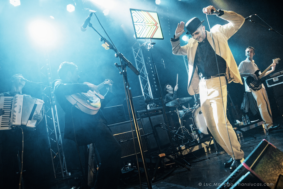 Cinq membres de l’équipe de départ, puisque Helno est décédé, et Mathias, à l’accordéon, a préféré ne pas reprendre ; il a choisi une autre vie. Il y a aura donc les deux frères Paulus, l’un à la basse et au chant, l’autre au trombone et au chant. Et aussi Iza Mellino, aux percussions, Miche, à la trompette, Cizzko à l’accordéon, Mathieu à la batterie, et moi, à la guitare et au chant.