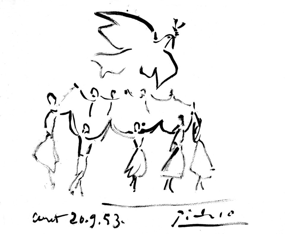• Hermeline Malherbe, présidente du Département des Pyrénées-Orientales, habillée elle-même en bleu et jaune, rappelait qu’à deux pas d’ici « Picasso dessinait sur une table du Grand café sa célèbre Colombe de la paix. »