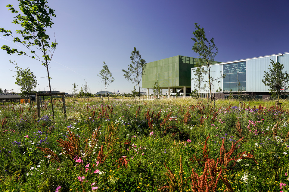 De quoi affoler le compteur du bilan carbone de ce chantier tout en béton (30 000 m3) et acier (plus de 7 000 tonnes, soit l’équivalent de la tour Eiffel). Sans compter la desserte routière du site, dont l’aménagement a déplacé 700 000 m3 de terre pour créer 4,2 km de voies rapides dans le prolongement de la RD 902, à proximité de la zone aéroportuaire de Blagnac. Le tramway demeure la seule offre de mobilité alternative à la voiture, en proposant une liaison directe depuis le centre-ville, environ 1 heure en comptant les arrêts et le petit quart d’heure de marche à pied à l’arrivée, ou depuis l’aéroport, à une vingtaine de minutes. Voilà pourquoi Maxime Le Texier, élu municipal d’opposition de la liste Archipel Citoyen et conseiller métropolitain n’hésite pas à dénoncer ce qu’il considère comme du « greenwashing » lorsque est évoquée la certification HQE (haute qualité environnementale) de niveau exceptionnel du MEETT et les mesures compensatoires : empreinte au sol minimale, site à énergie positive (10 700 panneaux photovoltaïques sur le bâtiment et les ombrières du parking ; centrale géothermique raccordée au réseau de chaleur Aeroconstellation), 10 ha aménagés avec la plantation de 973 arbres d’espèces endémiques, 20 417 plantes et arbustes, recyclage partiel des matériaux et du bitume sur place, sanctuarisation de 170 ha d’espace naturel … attestent pourtant d’un engagement écologique réel. Certes, la précision de certains chiffres est un brin déconcertante !