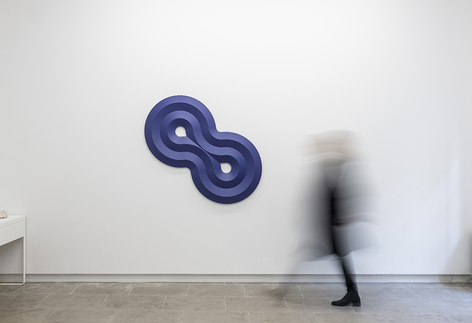 « Une géométrie de caoutchouc » en tout cas, comme l’explique Suzy Lelièvre qui puise son inspiration des mathématiques ou plus précisément de la topologie. Ainsi, les pièces se nomment-elles par exemple Truchet, en référence à Jean Truchet (1657-1729) dont les pavages font le bonheur des matheux et des graphistes, ou encore 2π radians. De véritables énoncés.